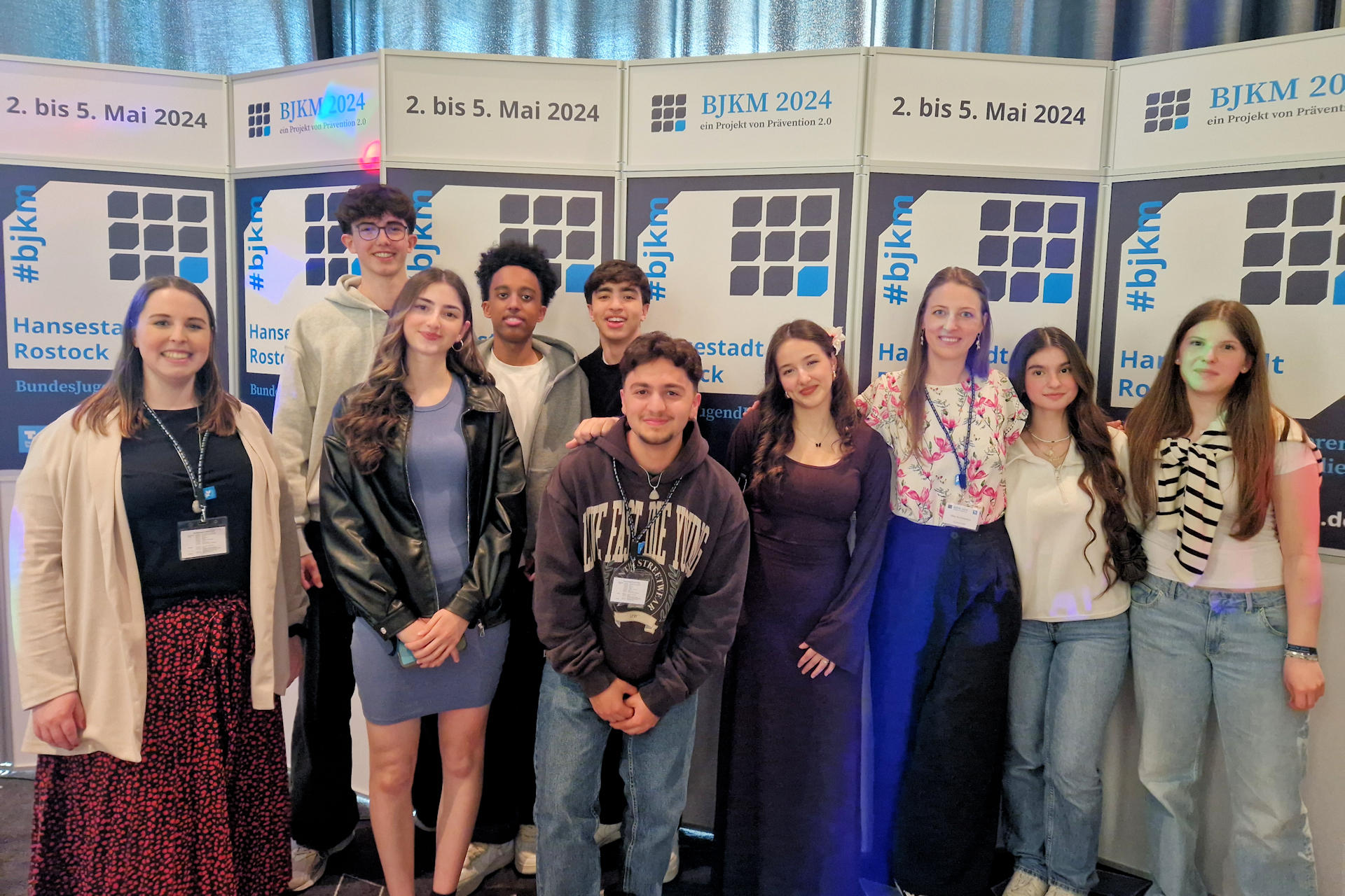 Die Medienscouts unserer Schule haben vom 02.-05.05.2024 an der BJKM (Bundesjugendkonferenz für Medien) in Rostock teilgenommen. Acht Schülerinnen und Schüler der 9. und 10. Klasse haben von Donnerstag bis Sonntag an verschiedenen Workshops zum Thema Cybermobbing, ChatGPT, Mutproben, mentale Gesundheit und Körpersprache teilgenommen. Insgesamt kamen knapp 300 Teilnehmerinnen und Teilnehmer aus 11 Bundesländern zusammen.
