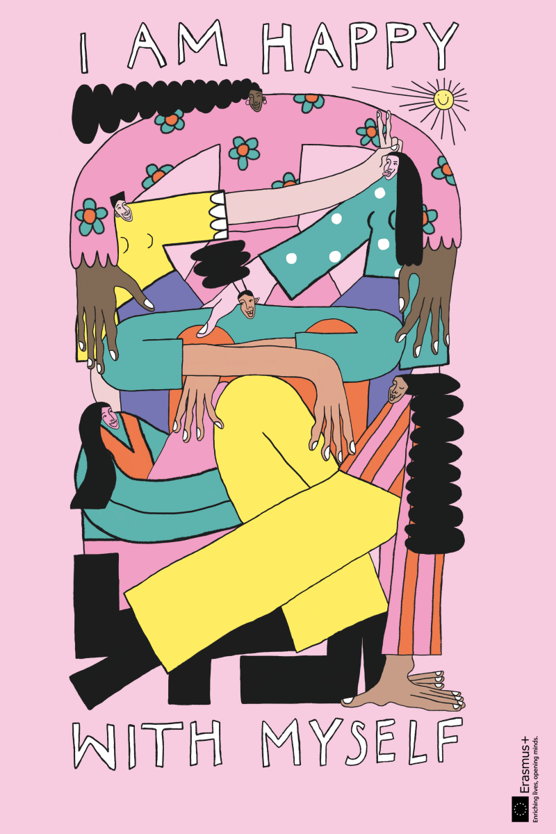 Before leaving school, we got some presents which also included our project t-shirt and a pencil with the Erasmus+ logo and the design with the motto of the week #iamhappywithmyself.