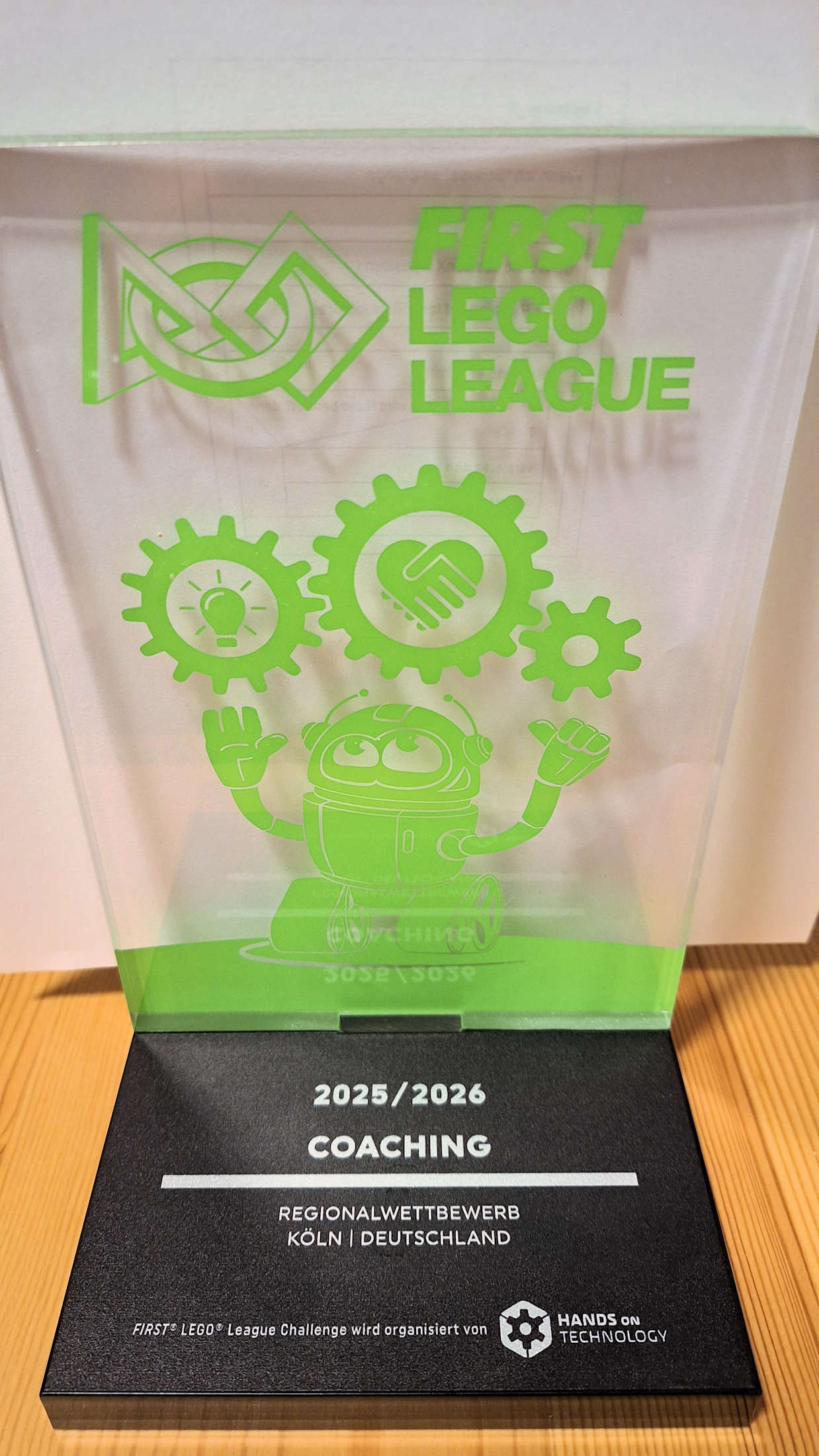 Ein schöner Erfolg war auch, dass Herr Kaffka, der Coach des Teams, den Pokal für die beste Coach-Leistung erhalten hat. Dies war letztlich ein Erfolg des gesamten Teams, was die gesamte Zeit der Vorbereitung mit viel Fleiß, Engagement und Motivation bei der Arbeit war.