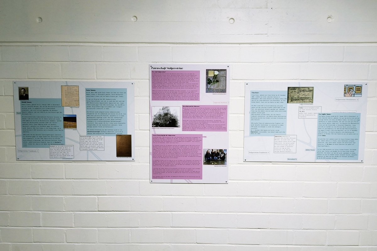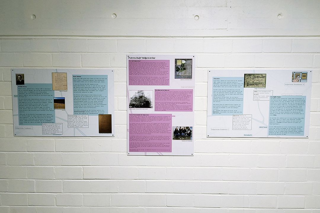 Die Tafeln informieren über die Lebensgeschichten der Brüder Rudolf und Erwin Simons sowie ihrer Mutter Clara Kroes und geben einen Einblick in das Schicksal der Menschen, die während der NS-Zeit verfolgt und ermordet wurden. Wir freuen uns, wenn Sie sich bei Ihrem Besuch an unserer Schule die Zeit nehmen, die Tafeln zu betrachten.