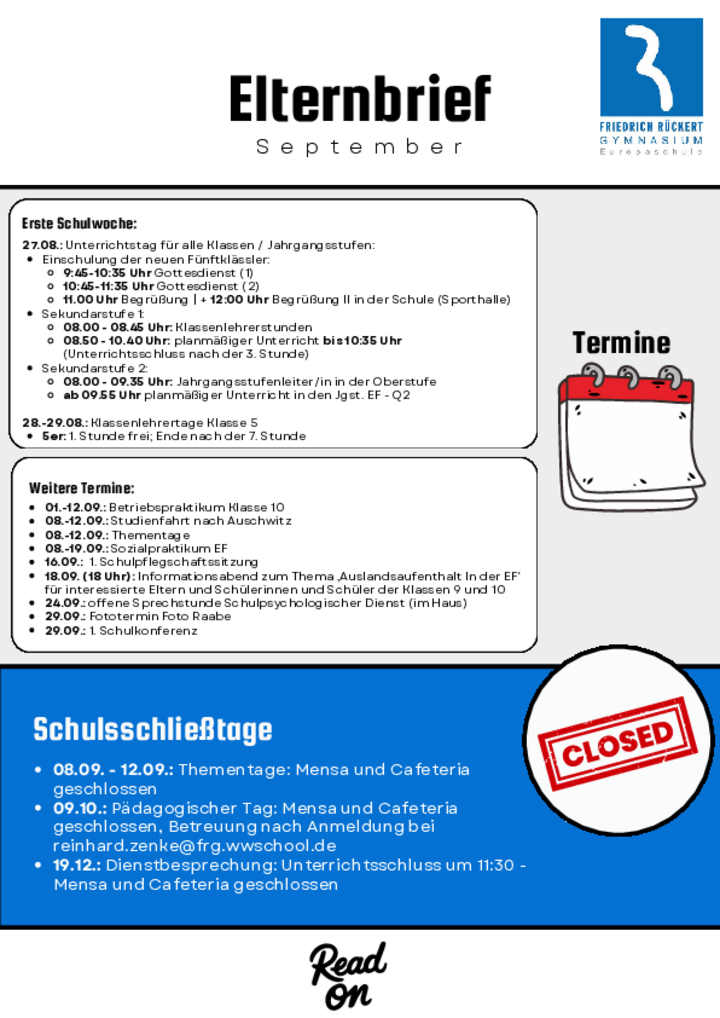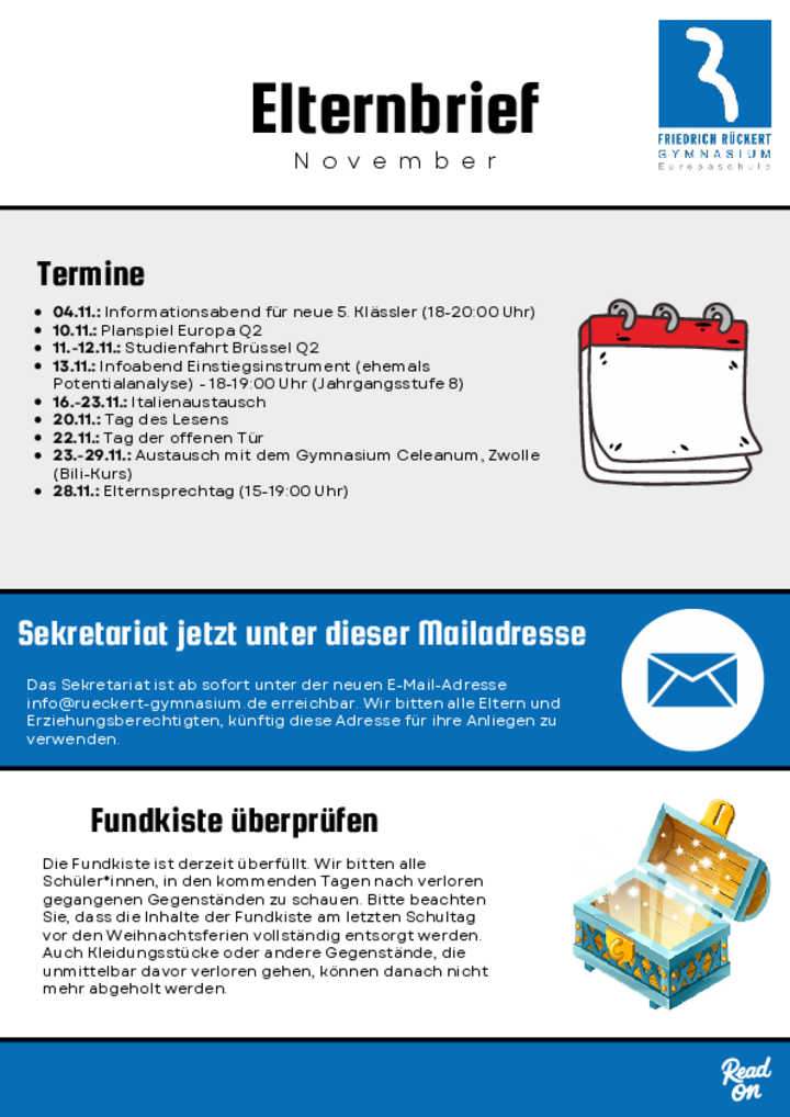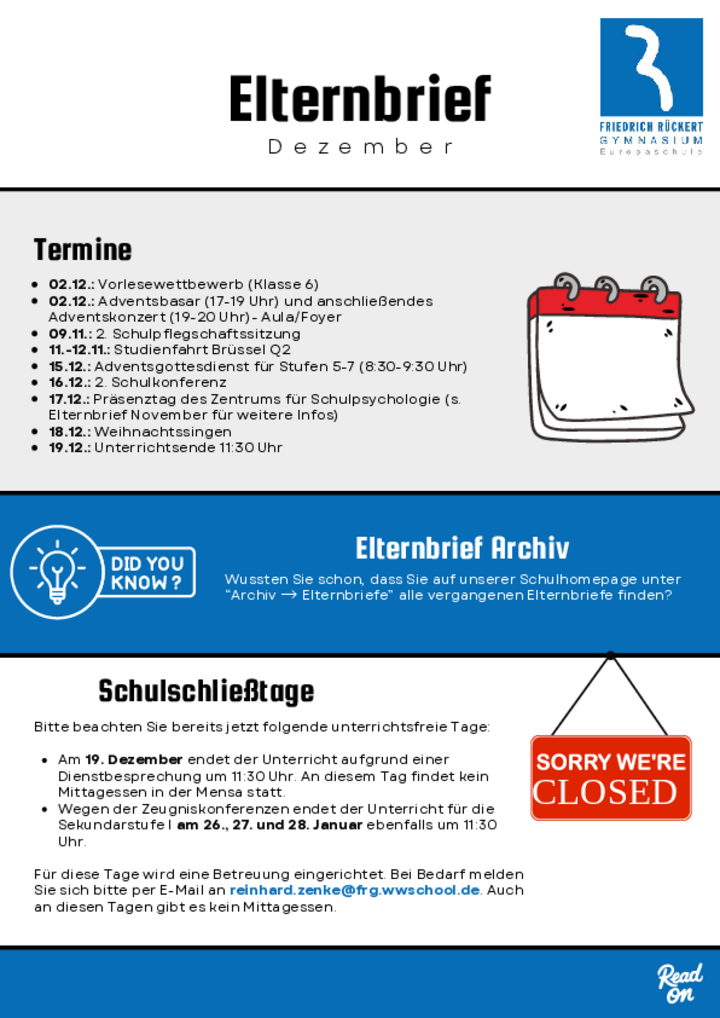 Monatlich informieren wir Sie als Eltern über Wissenswertes aus dem Schulleben. Stöbern Sie hier in unserem nach Schuljahren geordneten Elternbrief-Archiv.