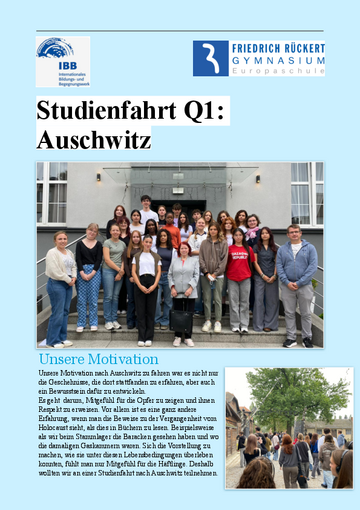 Studienfahrt Q1: Auschwitz Unsere Motivation Unsere Motivation nach Auschwitz zu fahren war es nicht nur die Geschehnisse, die dort stattfanden zu erfahren, aber auch ein Bewusstsein dafür zu entwickeln. Es geht darum, Mitgefühl für die Opfer zu…